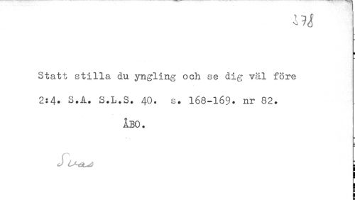 //// m //// ¦ //// Statt stilla du yngling ooh se dig väl före //// 2:4* S.Å. S.L.S. 40. s. 168-169. nr 82. //// åbo. //// J I ////