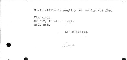 //// Statt stilla du yngling och se dig väl före Fångvisa. //// Hr 452, 10 str., Ingå. Mel. not. //// LAG US FIL AND. //// S ////