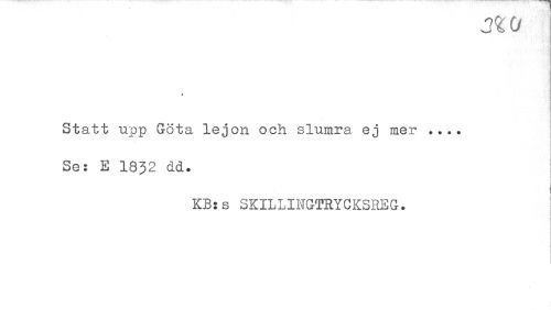 //// 3% O \ //// ! -i //// ¦ //// Statt upp Göta lejon och slumra ej mer ... Se: E 1832 dd. //// I //// KB:s SKILLINGTRYCKSREG. ////