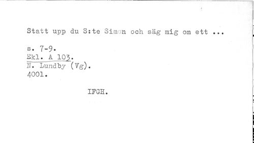 //// Statt upp du S:te Simon och säg mig om ett ... [ //// s. 7-9* gkl. å 10J. //// II. Lund hy (V g) . 4001. //// IFGH. //// ¦ //// i ////