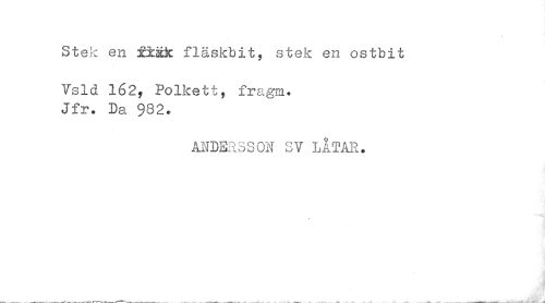 //// Stek en xiäk fläskbit, stek en ostbit //// Vsld 162, Polkett, fragm. Jfr. Da 982. //// ANDERSSON SV LÅTAR. //// ___. ^-f^ --- --- ... _ _ .. —r^. - nJtLi -kV - - --"---'-'--A- ^ ////