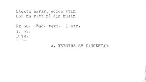 //// Stekta harar, gödda svin Sök nu rätt på din kusin //// Hr 50. End. text. 1 str. //// 2 0 & * J £. * //// D 74. //// Å. ISENITJS SV DÅISEEKÅR. //// I ////