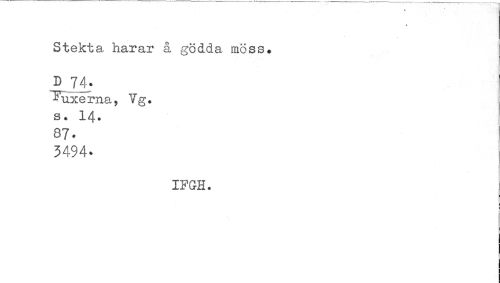 //// » //// Stekta harar ä gödda möss» I //// D 74. //// Fuxerna, Vg. //// s. 14. 87. //// 3494- //// ifgh. ////