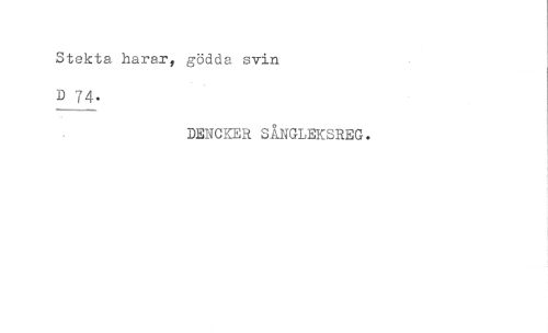 //// Stekta harax, gödda svin //// D 74. //// DENCKER SÅNGLEKSREG. ////