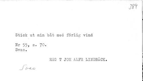 //// m //// i //// Stick ut min båt med förlig vind //// v //// Hr 55, s. 70. Svas. //// ¦ ¦ //// REG T JOH ALFS LINDBÄCK. //// i //// J I ////