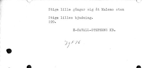 //// Stige lille gångar sig åt Malemo sten //// Stige lilles bjudning. 220. //// H-CAVALL-STEPHENS KB. //// * ////