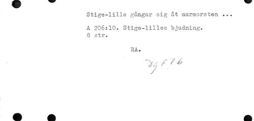 //// Stige-lille gångar sig åt raarmorsten ... //// A 206:10. Stige-lilles bjudning. 8 str. //// RA. //// X f 7 / ////