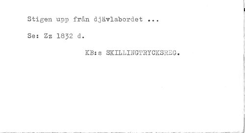 //// t //// Stigen upp från djävlabordet ... //// Se: Zz 18J2 d. j //// / //// KB:s SKILLINGTRYCKSREG. //// I. ! i ////