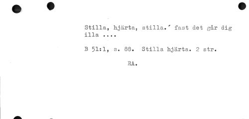 //// v //// v //// Stilla, hjärta, //// stilla# fcist do t dig //// i 13» st # * • • //// B 51sl> s, 88» Stilla hjärta. 2 str. //// .RA. ////
