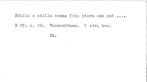 //// 1 //// « //// « . jt » Stilla o stilla somna från storm och snö //// i //// B 97* s* 28. Tusenskönan. 5 str. kom. //// RÅ. //// I //// | //// j //// I ////