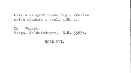//// Stilla skuggor breda sig i kvällen solen släckes i svala sjön . .. //// i //// Sk Genarp• i //// Mskpt. Soldatsånger. E.U* 33654» ! //// ¦ //// NORD MUS. //// 'i ////