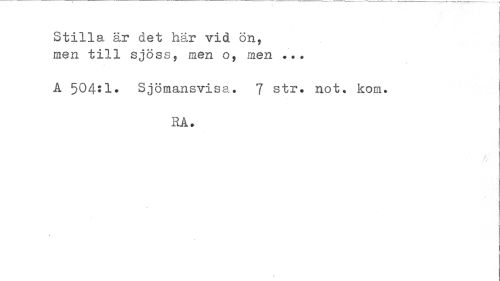 //// Stilla är det här Tid ön, men "ti X1 X sjöss5 men o, men ... //// A 504:1» Sjömansvisa. 7 str. not. kom. //// ra. //// i ////