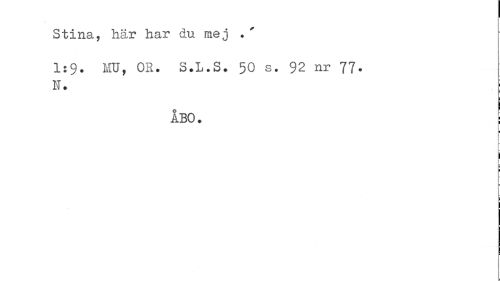 //// Stina, här har du mej .' //// 1:9* MU, OS. S.L.S* 50 s. 92 nr 77. //// N. | //// ABO. ; //// : //// 1 //// j ////