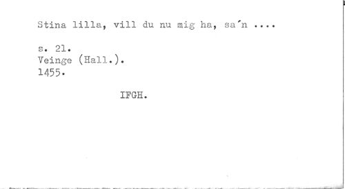 //// Stina lilla, vill du nu mig ha, sa'n ... s. 21. //// Yeinge (Hall.)? //// 1455» //// IPGH. //// » ////