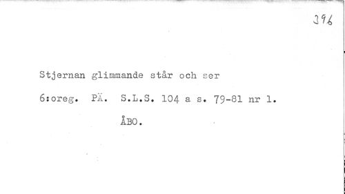 //// 2U //// Stjernan glimmande står och ser 6:oreg. På. S.L.S. 104 a s. 79-31 nr 1. //// ÅBO. //// I s //// I j! ////