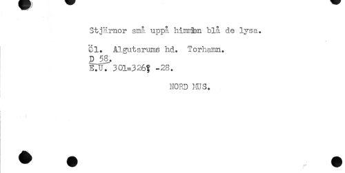 //// Stjärnor små uppå himmkn blå de lysa. Cl. Algutsrums hd. Torhamn. UT* 301=326| -28. //// NORD MUS. ////