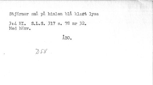//// ¦ //// Stjärnor små på himlen blå klart lysa j //// 3:4 Hl. S.L.S. 317 s. 78 nr 32. Med hänv. //// ÅBO. //// 7) M . ////