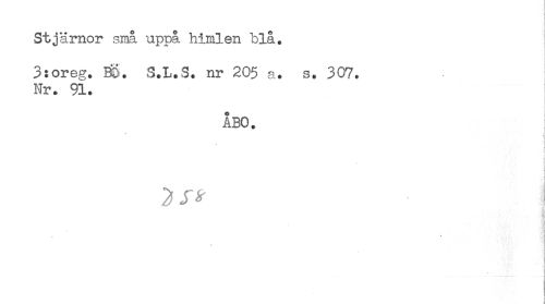 //// Stjärnor små uppå himlen blå. //// 3:oreg. BO. S.L.S. nr 205 a. s. 307. Nr. 91. //// ÅBO. //// i //// ¦ i //// * //// • .i //// i | //// i //// I ////