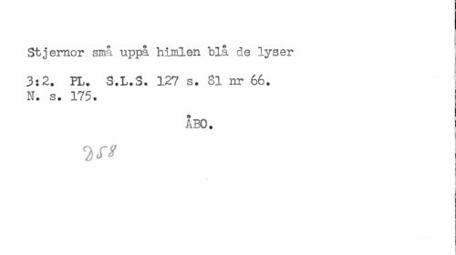 //// Stjernor små uppå himlen blå cle lyser 3:2. FL. S.L.S. 127 s. 81 nr 66. //// W. s. 175. //// ÅBO. //// c //// 1 //// I ////