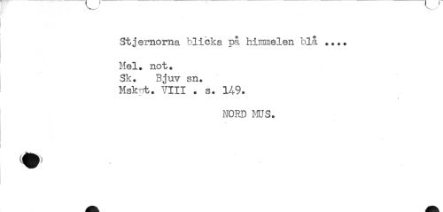 //// Stjeroorna blicka på hirmnelen blå «... //// Mel. not» //// Sk. Bjuv sn. //// Mskot. VIII . s. 149. //// 0 — //// / //// NORD MUS. //// % ////