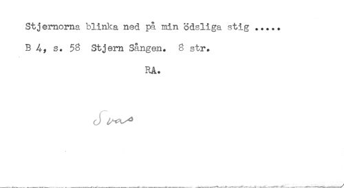 //// Stjernorna blinka ned på min ödsliga stig B Uf s. 58 Stjern Sången* 8 str. //// RA. //// cJ ////