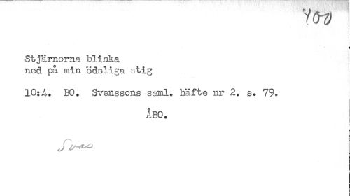 //// YW //// ! 1 //// ! //// Stjärnorna blinka ned på min ödsliga stig //// ... //// 10:4. BO. Svenssons saml. häfte nr 2. s. 79. //// ABO. //// i //// J is-AoO ////