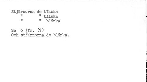 //// Stjärnorna de blänka //// n " blinka t //// " « blänka //// Se o jfr. (?) //// Och stjärnorna de blänka. //// i //// I //// B i ////