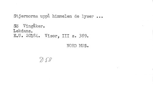 //// Stjernorna uppå himmelen de lyser ... //// Sö Vingåker. Lekdans. //// E.U. 20184. Visor, III s. 389. //// NORD MJS. //// I ////
