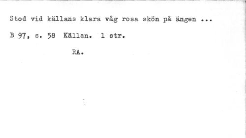 //// 'H //// Stod vid källans klara våg rosa skon på ängen B 97, s. 58 Källan. 1 str. //// RÅ. //// % //// - * ////