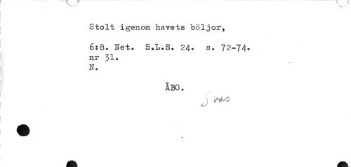 //// Stolt igenom havets böljor, //// 6:8. Het. S.L.S. 24. s. 72-74» nr 31. N. //// ÅBO. //// \ </+*> ////
