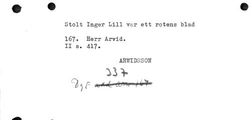 //// Stolt Inger Lill var ett rotens blad 167• Herr Arvid. //// II s * 417. //// ARWIDSSOH //// 9 v Y ////
