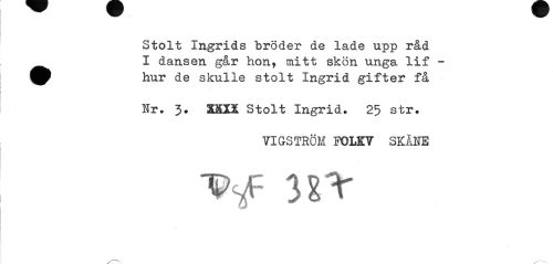 //// Stolt Ingrids bröder de lade upp råd ^ I dansen går hon, mitt skön unga lif - //// hur de skulle stolt Ingrid gifter få //// Nr. 3* XKX3E Stolt Ingrid. 25 str. //// TEGSTRÖM F0LE7 SKiHE ////