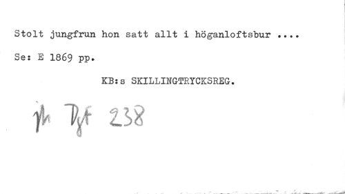 //// Stolt jungfrun hon satt allt i höganloftsbur ... Se: E 1869 PP* //// KB:s SKILLIHGTRYCKSREG• //// ¦ . » J v- lA' ^ifl ////