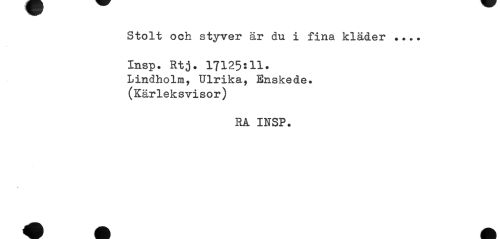 //// Stolt och styver är du i fina kläder ... //// Insp. Rtj. 17125:11• //// Lindholm, Ulrika, Enskede. (Kärleksvisor) //// RÅ INSP. ////