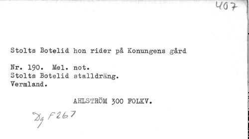 //// | //// Stolts Botelid hon rider på Konungens gård //// Nr* 190. Mel. not. Stolts Botelid stalldräng. Vermland. //// ÅHL3TRÖM 300 FQLKV. ////