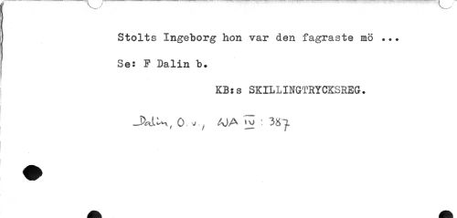 //// Stolts Ingeborg hon rar den fagraste mö ... Se: F Dalin b. //// KB:s SKILLINGTRYCKSREG. JUvh, 0- v./ AJA »w : 3&J ////