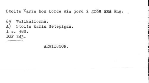 //// Stolts Karin hon körde sin jord i grön äKiit äng. 63 Wallkullorna. //// A) Stolts Karin Getepigan. ; //// I s. 388. j //// DGF 243. S //// AEWIDSSOH. //// a //// i 1 //// i //// * i- //// 1 ////