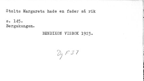 //// Stolts Margareta hade en fader så rik 1 //// ¦ //// s. 145. //// Bergakungen. //// BENDIXQN ¥ISBOK 1923. //// j 1 ////