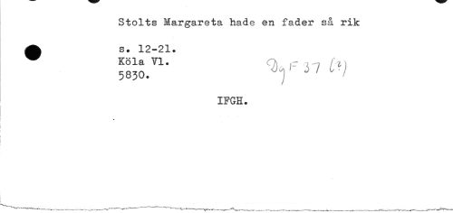//// Stolts Margareta hade en fader så rik //// A s« 12-21. //// Kola TI. 0\ ,r i ? f 21 //// 5830. 3; 6 / //// IFGH. //// •V ////