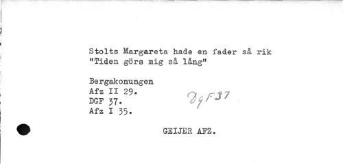 //// Stolts Margareta hade en fader så rik "Tiden görs mig så långM //// Be rgak onungen //// Afz II 29» r* rf7 //// DGF 37? c3frJ/ //// Afz I 35- //// ^ GEIJER AFZ. ////