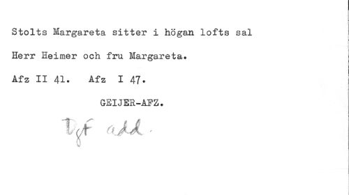 //// Stolts Margareta sitter i högan lofts sal //// ¦ //// Herr Heirner och fru Margareta. //// Åfz II 41. Afz I 47. //// GEIJER-AFZ. //// iyt" f'lAÅ. - //// v ////
