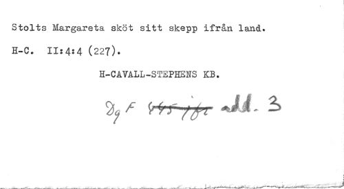 //// Stolts Margareta sköt sitt skepp ifrån land. //// H-C. 11:4:4 (227). //// H-CAVALL-STEPHENS KB. //// 4 //// < //// * ////