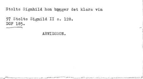 //// ! //// Stolts Signhild hon hugger det klara vin //// 97 Stolts Signild ii s. 128. //// DGF 185. //// _ //// ¦ mmm*~>—*...—^ \ //// i //// ARWIDSSOH. //// i //// 'A i //// i //// -—>—r-—---r---. ---—„___ ——__—'————---—„ JiJ ////