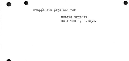 //// Stoppa din pipa och rök //// MELMG SKILLTR REGISTER 1700-1830. ////