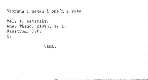 //// Storhun i hagan å oks'n i rota //// Mel. t. getarlåt. Ing. Tåsjö, 21973, s. 1. läsström, J.P. 2. //// ULMA. //// ___ * ___ ___„___ .. . . ___ fV^K,___. ...__ ...„..^---^---U*—<'--—--»-.---—'---—--- ////