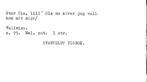 //// Stor Ola, lill* Ola nu körer jag vall kom möt mig:/ //// Vallvisa. j //// s. 99* Mel» not. 1 str. j //// SVANFELDT VISBOK. | //// ¦ //// I ////