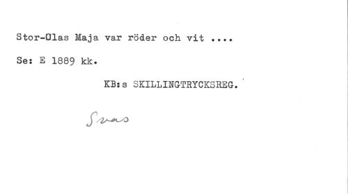 //// Stor-Qlas Maja var roder och vit ... Se: E 1889 kk. //// KB: s SKILLINGTHYCKSBEG. ' ////
