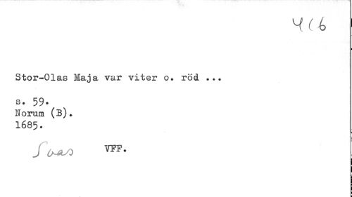 //// na //// Stor-Olas Maja var viter o. röd ... //// s. 59» //// Norum (B). 1685. //// VFF. ////