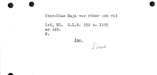 //// Stor-Olas Maja var roder och vit //// 1:6, KO. S.L.S. 552 s. 1105 //// nr 449» N. //// » //// ÅBO. //// j Ch<^> ////