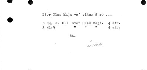 //// Stor Olas Maja va' viter å rö ... //// ^ B 44, s. 100 Stor Olas Maja. 4 str. //// A 41:5 w tt tt 4 str# //// RA. ////